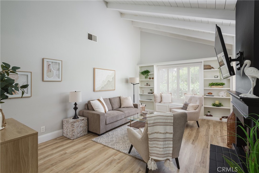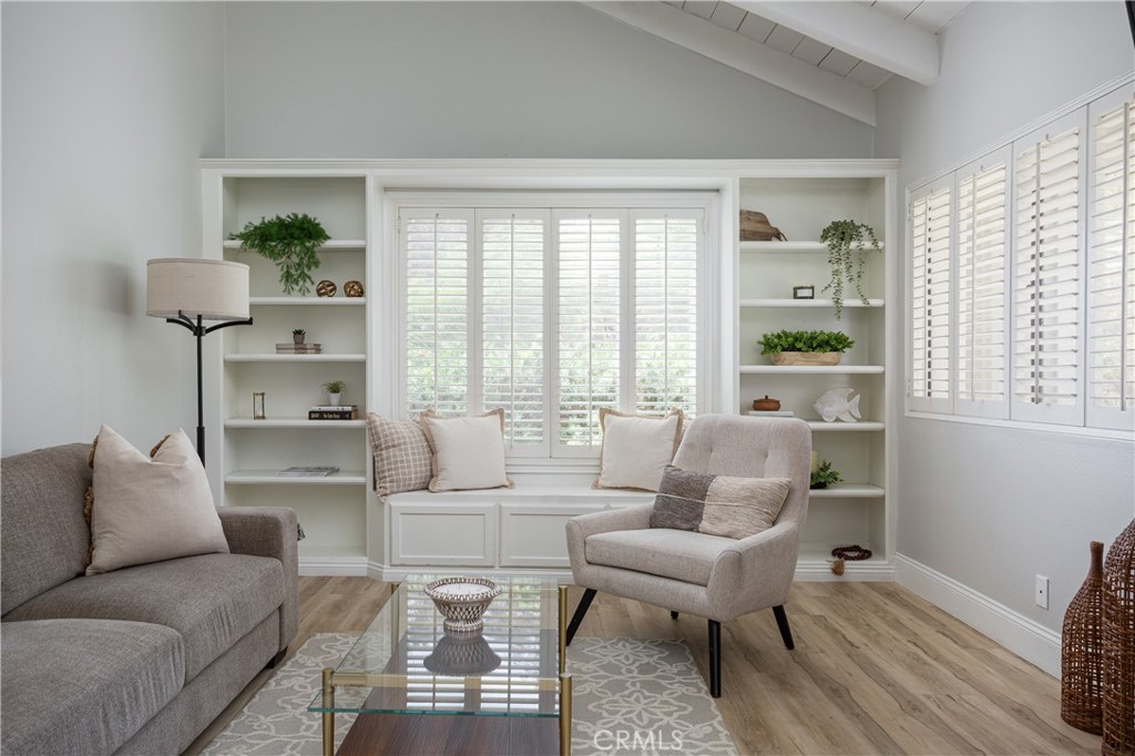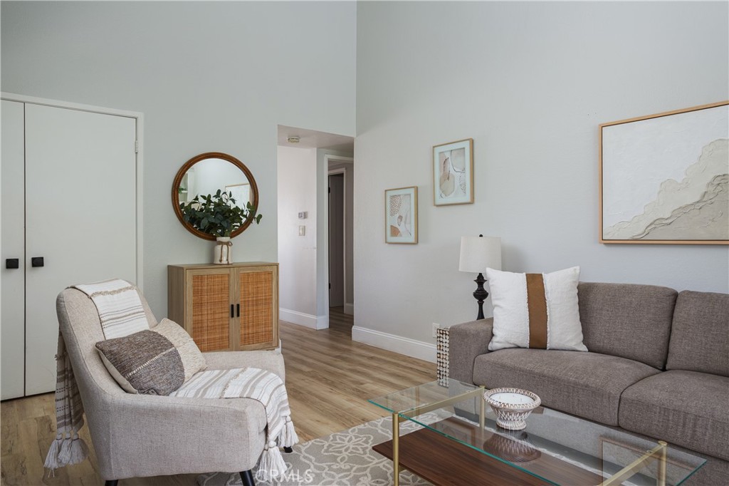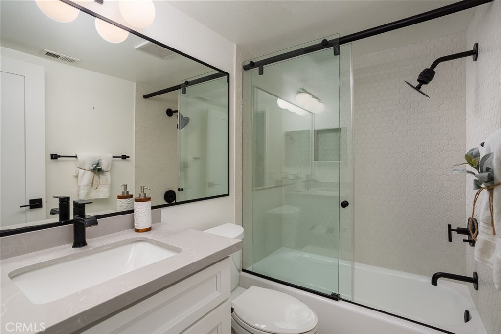 This 2 bedroom, 2 bathroom condo with an enclosed courtyard just off the private 1 car garage has been fully remodeled and beautifully designed with upgraded bathrooms, kitchens, and flooring. As you enter the main living area you are greeted with spacious high vaulted ceilings and a bright open space. For those seeking relaxation and recreation the community features pools, a spa, basketball courts, and private outdoor seating areas.