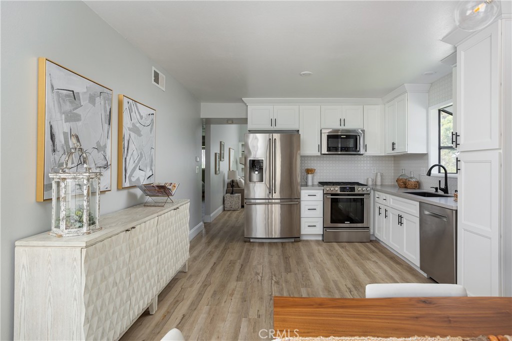 The condo features two spacious bedrooms and two fully renovated bathrooms, providing a fresh and contemporary feel. Including a bright and airy windowed kitchen, this home is designed to accommodate a variety of lifestyles. The kitchen is outfitted with a gas oven, gas stove, refrigerator, and dishwasher, making meal preparation a pleasure. The convenience of an in-unit washer and dryer further enhances the ease of living. For those seeking relaxation and recreation, the communal pool and common hot tub are ideal spots to unwind. Enjoy the luxury of a private patio, perfect for outdoor dining or simply soaking up the California sun.